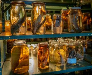 The collection is divided among two buildings, one housing jar lots of hagfishes through catfishes and the second housing tank specimens and jar lots of minnows through tetraodontiform fishes. Other facilities include a library featuring ichthyological literature and reprints, alcohol redistillation equipment, and a specimen imaging room for 2-D and 3-D imaging of specimens. The facility is open for research purposes and tours. For more information, visit